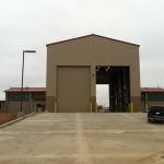 This project which is located in Camp Pendleton, CA is a Nucor pre-engineered metal building. It consists of insulated wall panel and a 5 ton top running bridge crane. It also has banded R30 PSK-VR insulation under a standing seam metal roof. This building was used for the maintenance of military tanks.